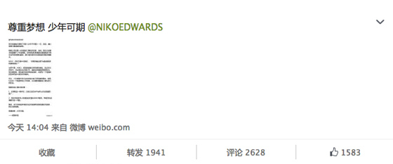 但此次事件之后,这篇《少年不可欺》已得到超过10万的微信阅读量,微博转发近10万,评论13万——从这个结果看,Niko干得也不赖。