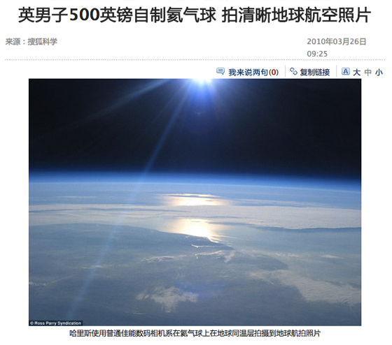下午两点,之后群众们纷纷翻出曾看到过的“用气球拍摄地球”的案例,结果大家一对比,发现给地球拍照的人还真不少。