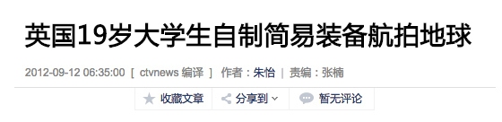 11月29日,一个号称“新青年艺术团队”的微信公众号NIKOEDWARDS发布了一篇名为《少年不可欺》的文章。文中的男主角叫做Niko,是一位“19岁的普通少年”,他和他的团队在9月8日用气球将相机和GPS送上空中,并成功地拍下了地球的样子。