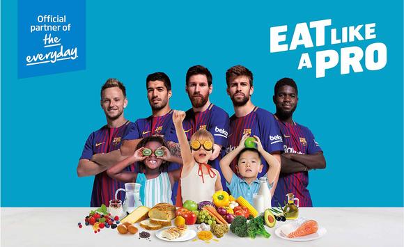 值得注意的是,巴萨球员参加这场比赛时所穿的球衣有所变化。巴萨球衣的袖子处原本是赞助商倍科的logo,不过在这场西班牙国家德比中,倍科的logo改为了#EatLikeAPro。据悉,这是UNICEF(联合国儿童基金会)提出的一个口号,以帮助解决儿童肥胖问题。