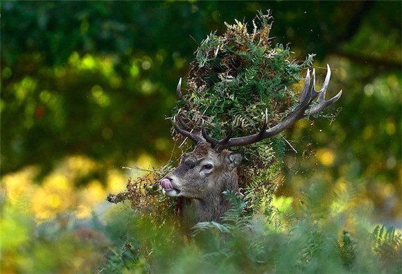 10月3日,在伦敦的里士满公园,一只雄性麋鹿(图片来自Toby Melville)