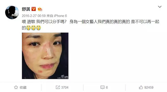 舒淇可以算得上女明星里面的超级过敏星人了,