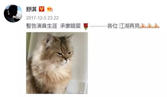 去年12月,舒淇宣布要暂别演员生涯,