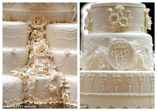 威廉王子和凯特王妃的婚礼蛋糕由蛋糕师傅Fiona Cairns专门定制。Fiona Cairns花了五个星期时间完成这件蛋糕界的艺术品。这位蛋糕师傅在哈罗斯百货公司、塞尔福里奇百货和维特罗斯百货公司都设有专柜。59岁的Fiona Cairns在二月份的时候收到英国宫廷的邀请,他们请她为威廉和凯特的婚礼定做蛋糕。
