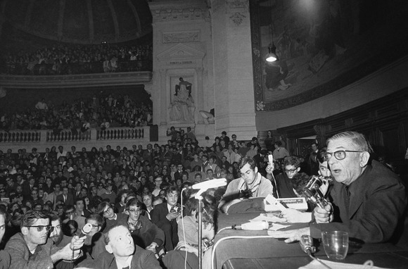 五十年代,萨特的左翼倾向和声望都达到顶峰,被视为共产党的同路人,甚至是苏共代言人。赫鲁晓夫上台,秘密报告的流传、斯大林的残酷引起人们对苏联的疑虑,也影响到萨特的感召力,六十年代他的影响有所下降。于是,他染上在各种宣言上签名的爱好。研究者统计了从1958年到1969年发表在《世界报》上的488份宣言,萨特有91个签名,名列第一,是排名第20位的31个签名的三倍。萨特的情人西蒙娜·德·波伏娃有72个签名,排名第三。另一位签名积极分子玛格丽特·杜拉斯,排名第15位,有37个签名。在风暴中,萨特当仁不让地参与了多个签名,除了8日,9日他也联署宣言:“向用一切手段摆脱异化秩序的学生们致敬!”5月10号出版的《世界报》第九页再次出现他的联署签名——只是不确定与9日的签名是否是同一个。5月15日他还跑到索邦大学明确表示对学生们的支持。5月20日索邦大学的海报上也有他的签名。当时流行的一句口号是“宁跟萨特错,不跟阿隆对”,可见狂热到已经失去理智和判断力。萨特对风暴起到了推波助澜作用。