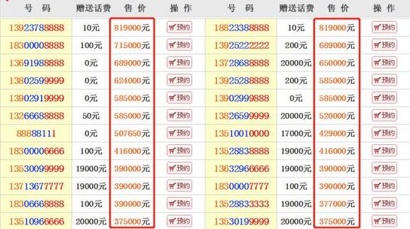 究其原因,还是由于经典手机靓号的资源逐渐稀缺,很多连号、串号的价格一路飙升,一个 139 开头的,尾数为四个 8 的号码,在早些年市场价大概为 5 到 6 万元,而现在的价格已经涨到了八十万元起。