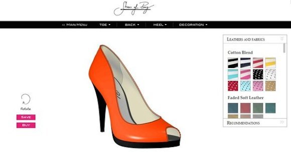 说到定制,怎么能少了高跟鞋呢。2012年一家澳大利亚初创公司Shoes of Prey让顾客可以在它的网站上设计自己中意的女鞋,最后公司会把这些鞋子制作出来,并在5周之内发货。