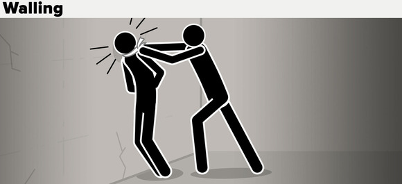 除此之外,审讯者还会直接抓起囚犯扔到墙上,并重复很多遍。