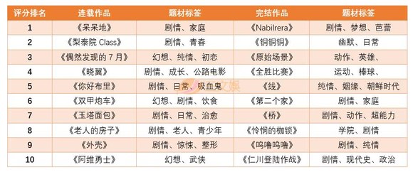 而从 Daum Webtoon 的连载作品和完结作品的人气排行也可以看出,作品的题材多涉及剧情、纯情、日常等,也因为平台主要连载具有较强叙事性的网络漫画作品,吸引了大批 20~30 岁年龄层的用户。此外与 Naver Webtoon 相反,Daum Webtoon 的女性用户占比略高于男性用户占比。