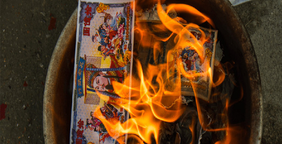 一些故事的结尾也指出,人们不久之后发现烧纸并不能真的将死者带回阳间(这是在任何一个案例中都会预见到的深刻矛盾)。但是,这种明显的事实并没有(并且现在也没有)阻止人们烧纸,这一行为随后成为使生者免于惩罚的习俗。就像花钱一样,在宇宙中的穿透力与活力的无尽涌动中无限循环。生命的来来去去犹如金钱的循环——两种循环以神秘的方式超越了即时、可视的世界范围。其他的民间故事使用纸钱来缓解怀疑论者和愤世嫉俗者对这一神秘性提出的责难,并在这一过程中推动了这样的理念,货币价值(以及所有形式的财富)的真正源泉是超越现世层面的;其在宇宙范围内循环,其终究并不处于活人的控制下,而是受控于鬼魂世界。