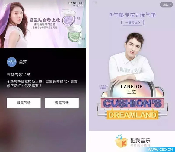 同时,兰芝还覆盖了酷我音乐、腾讯新闻、QQ浏览器等APP闪屏广告,全力放送兰芝新品的概念与特点。