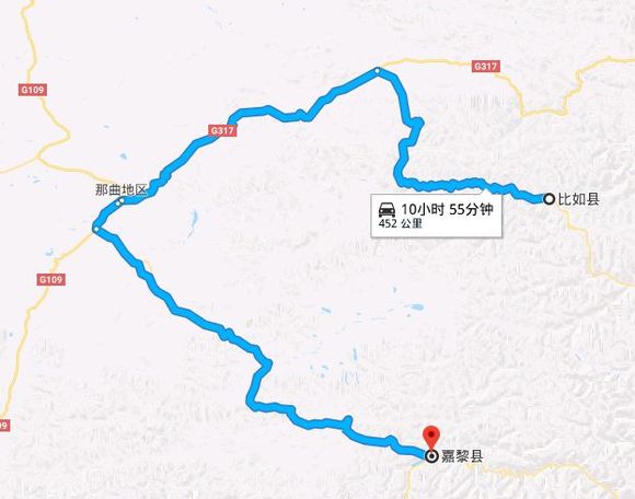 ▲谷歌地图:从比如-嘉黎的传统线路,要绕到那曲县