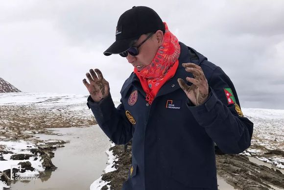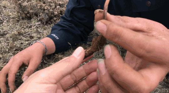 ▲沾了泥巴的手在海拔4900米的高原上太冷了