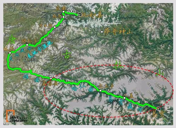 ▲上图的比如-嘉黎,就是里程和我说的“近路”,要穿越一个湿地