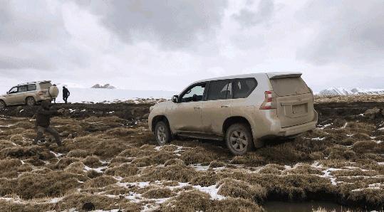 前面说到湿地容易陷车,就连4.7排量的陆巡也未能幸免,陷了一次车,而后面的我们则汲取教训,绕开已经泥泞不堪的“主路”,小心翼翼地开下路基,才不至于重蹈覆辙。