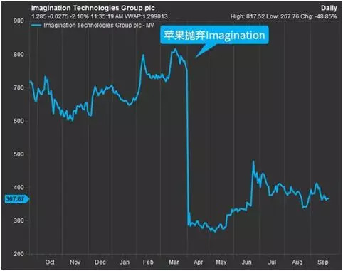 由于Imagination一半以上的市场份额和营收都来自苹果,结果可想而知,公司股价一夜之间暴跌70%。到了2017年6月,Imagination董事会宣布,将开放公司收购给一切可能的买家。