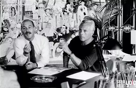 年轻时期的乔治·阿玛尼(右)与爱人赛尔焦·加莱奥蒂