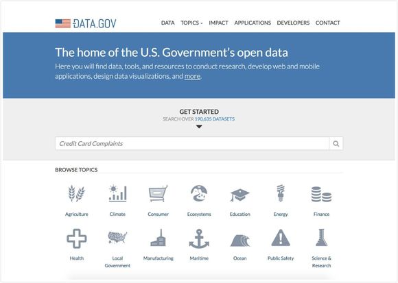 120天后,一个叫做Data.gov的网站正式上线发布,作为美国政府开放数据的门户,提供数据、工具、进行研究的材料用于开发网络及移动应用、设计数据模型等。