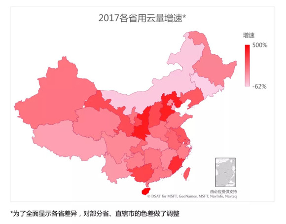 海南和福建虽然在用云量的绝对总量上和北上广深等一线地区还是存在差距,但是在二三线区域是领头羊。像海南省在2014年开始就在投入政务云计算中心的建设,并且把云计算和旅游业、服务业对接,推动海南省第三产业转型升级。在未来,云计算可能会成为一些二三线经济区域弯道超车的机会。