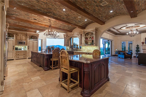 别墅除了包含7间卧室、9间浴室之外,还有酒吧、电影院、健身房、藏书室和一个能容纳5辆车的车库。