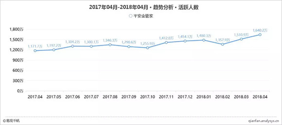 2017年4月-2018年4月平安金管家APP月活趋势
