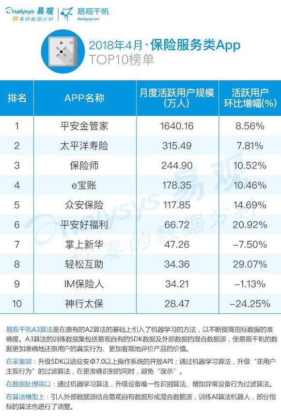 2018年4月保险服务类应用TOP10榜单