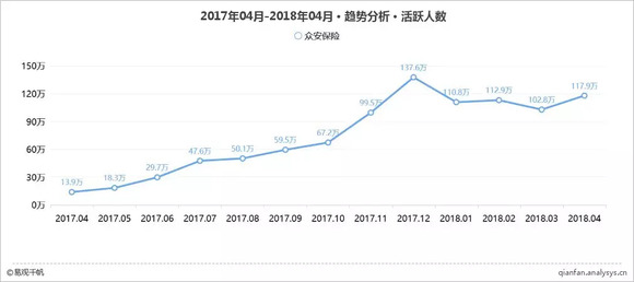 2017年4月-2018年4月 众安保险APP月活趋势