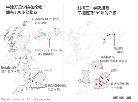 它们两校的资产总和达到210亿英镑,其中包含近35亿英镑的房产。