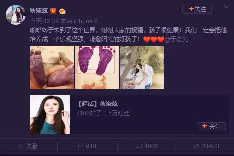秋瓷炫产子