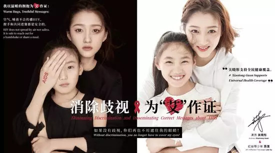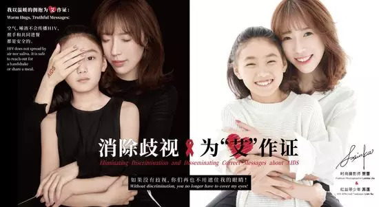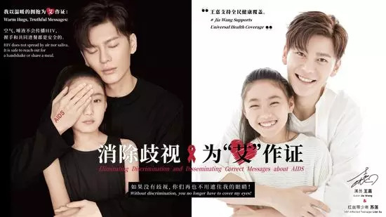演员蒋雯丽、王嘉、关晓彤、国际钢琴艺术家吴牧野和HIV感染女孩一同拍摄的为艾作证公益海报今日发布。海报中小女孩被抱在怀中捂住眼睛,与“如果没有歧视,你们再也不用遮住我的眼睛”相呼应。