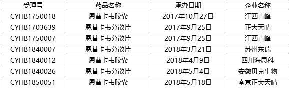 而目前仿制药一致性评价申报表中,恩替卡韦有7个,包括:3个恩替卡韦胶囊,分别由江西青峰、正大天晴和海思科3家公司申报;4个恩替卡韦分散片,分别由正大天晴、江西青峰、苏州东瑞、贝克生物4家公司申报。