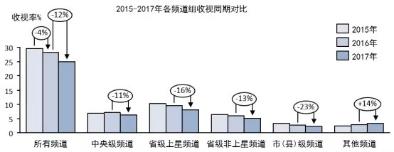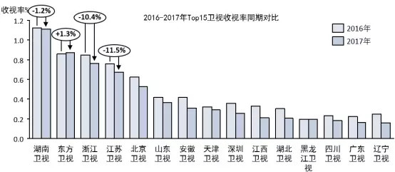 “卫视一哥”——湖南卫视依旧拿下了头把交椅,但收视率却同比降低了1.2%,Top15卫视中只有东方卫视收视率相比去年同期有所上升,浙江和江苏卫视收视降幅超10%。而他们吐出来的收视率则被其他频道给吞下了。