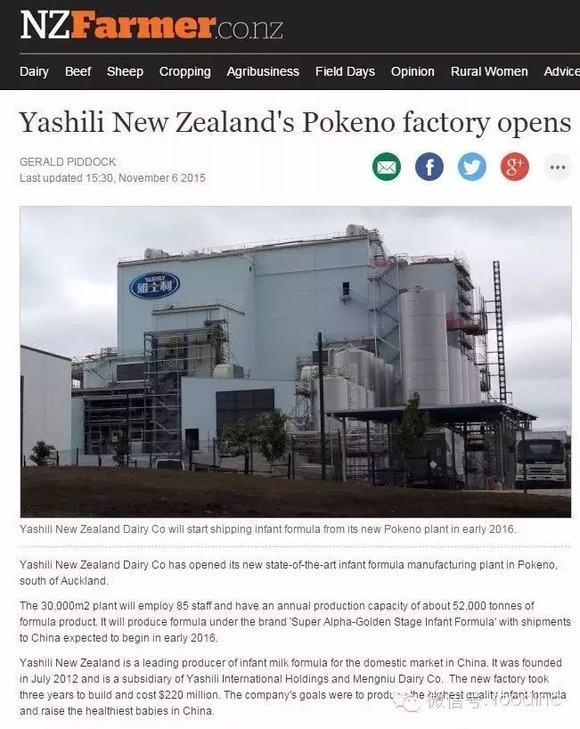 历史图片:新西兰媒体报道雅士利新西兰工厂开业