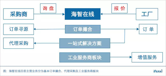 随着平台积累工厂及采购商数量增多,海智在线于2018年成立了工业服务商板块,通过引入第三方服务商为工厂提供咨询、物流及金融等增值服务,同时开展代理采购业务,为采购商提供一站式代理采购解决方案。