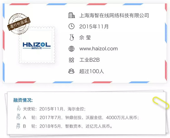 海智在线是工业非标零部件领域B2B平台,为国内中小工厂对接全球订单资源。2018年,海智在线新推出智能核价器,配合工厂数据标签库,提升订单撮合效率。目前,海智在线积累超过14万采购商及60万工厂,累计成交超过1万个项目。