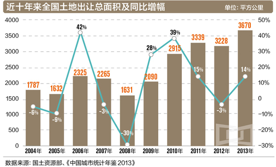 地方政府对土地财政的依赖由来已久。国家发展和改革委员会城市和小城镇改革发展中心专家乔润令在1月9日于吉林省白城市举行的“建设吉林西部生态经济区高层论坛”上表示,土地财政与城镇化推进具有正相关关系。2000年-2013年城市建成区面积扩大约1倍,土地出让年收入增长超30倍,总额累计近20万亿元,地方政府形成了“吃饭靠财政,建设靠土地”的格局。