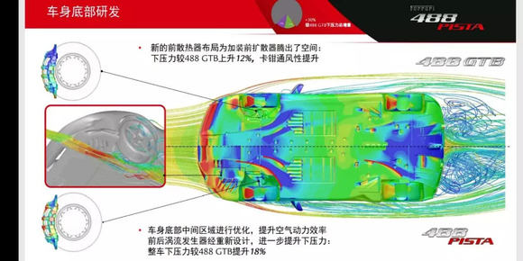 法拉利一直有个偏执,要将F1的空气动力学科技落实在每一辆跑车上,但不能破坏跑车的绝美线条,用晒衣架般的尾翼来提升下压力那是取巧的作法,况且下压力不是唯一,考虑到高速性能,提升下压力的同时还必须减少空气阻力。