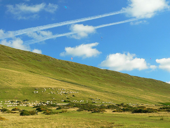 虽然不知道具体取景地是哪里,但广袤的草原上点缀着羊群的白色斑点,蓝得几近透明的天空中浮着朵朵白云,这活脱脱就是天空之城飞过的地方!