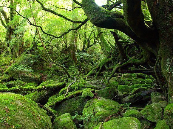屋久岛与鹿儿岛本岛隔着大隅海峡相望,多山多雨,岛上约21%的面积被录入世界自然遗产名录,生长着有6000年以上树龄的绳文杉。这里宁静、幽远,置身其中,你几乎要怀疑幽灵公主不知什么时候就会来到你的眼前了。