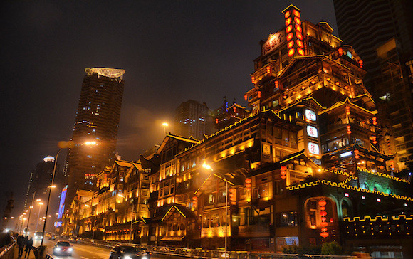 距解放碑不远的洪崖洞临江而建,有酒店、美食街,也设有剧场,是一处观光胜地。远远望去,简直和《千与千寻》里的不可思议之街一模一样!