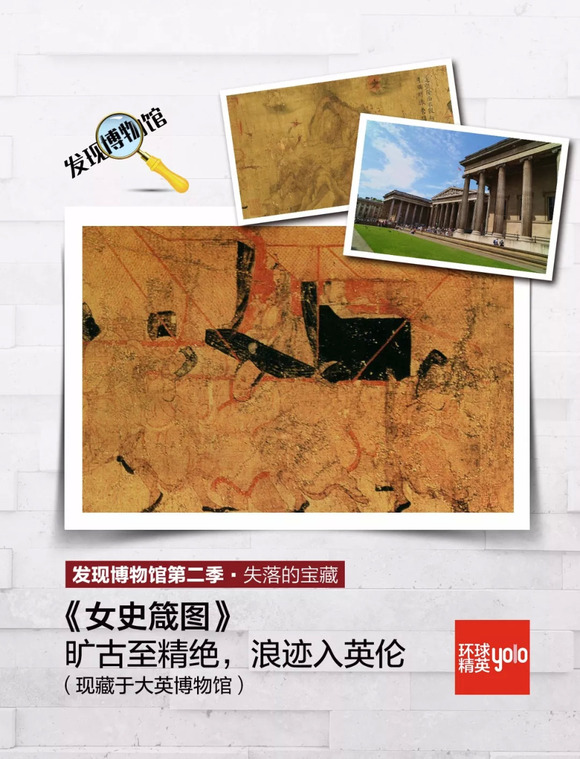 《女史箴图》的原作已佚,现有两个摹本存世,唐代摹本原有12段,因年代久远,现存仅剩9段,为绢本设色,是最得顾恺之精髓的一幅,现收藏于大英博物馆。虽是摹本,但堪称神品,作为镇馆之宝毫不为过。另一幅为宋人临摹,被北京故宫博物院收藏,笔意色彩皆非上品。