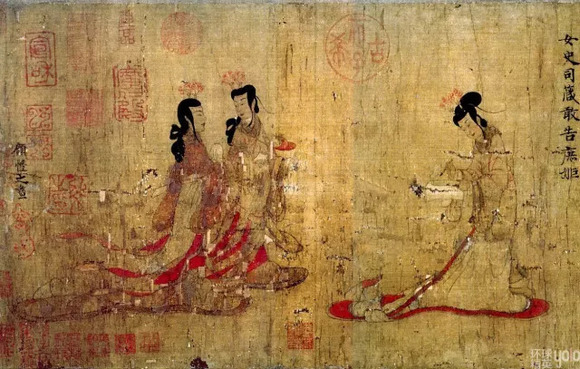 此图依据西晋张华《女史箴》一文而作,原文十二节,所画亦为十二段,现存自“冯媛挡熊”至“女史司箴敢告庶姬”共9段。笔法如春蚕吐丝,形神兼备,使得画面典雅、宁静又不失明丽、活泼。