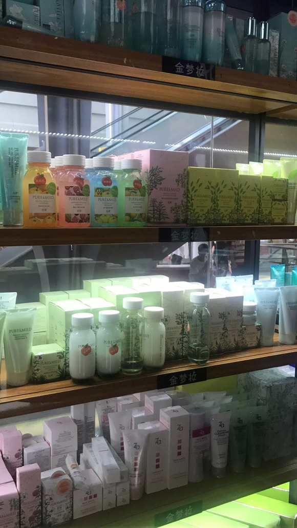 晓晓走访发现,在武汉光谷金梦妆店铺内,泊美品牌与Za共用一个货架,且享受与店铺内其他本土品牌相同的折扣(第一件7.9折,第二件6.9折),不过当晓晓问询泊美的产品时,店员却主动推荐了自然堂的冰肌水系列。