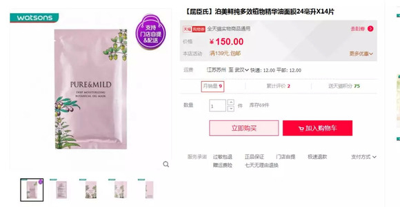 事实上,去年该系列首发时,资生堂方面在接受晓晓的采访时表示,“美肌果饮”系列产品将首先在品牌专柜和各大屈臣氏销售。不过近期晓晓走访武汉多个屈臣氏门店并未发现泊美的任何商品在售。而在屈臣氏网上店铺中,也仅发现其一款鲜纯多效植物精华油面膜产品在售,且月销量为9笔。