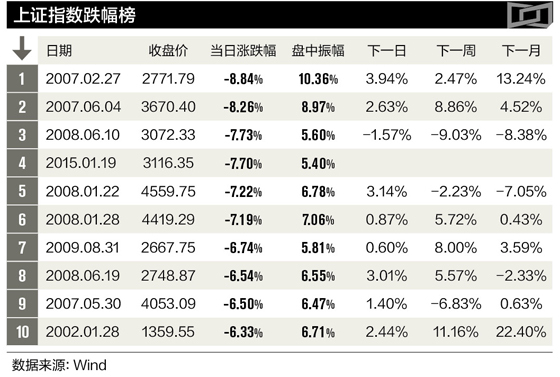 当日,沪指7.70%的跌幅创下近6年来最大单日跌幅。
