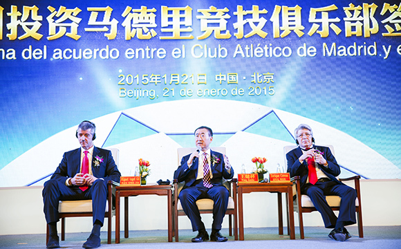 1月21日,在传出“绯闻”3个月之后,万达集团和西班牙马德里竞技足球俱乐部(下称马竞)在北京举行了迟来的签约仪式——万达出资4500万欧元(约合3.2亿元人民币),购买马竞20%的股权,并将进入这家俱乐部的董事会。这也标志着,欧洲顶级足球俱乐部首次迎来了中国企业投资者。