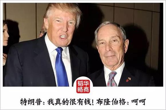 特朗普一向自诩非常有钱(个人资产31亿美金),但布隆伯格累计向社会捐款额(25亿美金)都快接近特朗普的身价了。而和布隆伯格的500亿美元身价相比,特朗普的财富完全是小儿科级别。