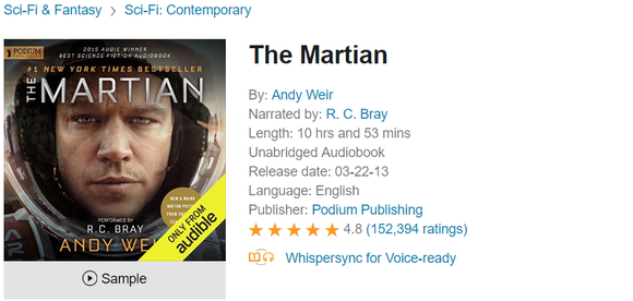 科技进步是有声书兴起的核心原因。曾经,有声书不便于携带。乔治·马丁的《权力的游戏》有声书中就包含了28张CD。但是,智能手机的兴起使得不论多长、多厚、多重的书籍都能够存储到手机当中。人们对于有声故事的需求增加也是其中一个原因(Audible还制作播客)。但是,Audible的成功与亚马逊的市场主导地位密不可分。亚马逊原本就拥有大型的电子书销售服务,所以,亚马逊同时拥有有声书销售服务也就毫不奇怪了(亚马逊的订阅服务也有利于有声书的兴起,每个月14.99美元的费用也就相当于一本有声书价格的一半)。