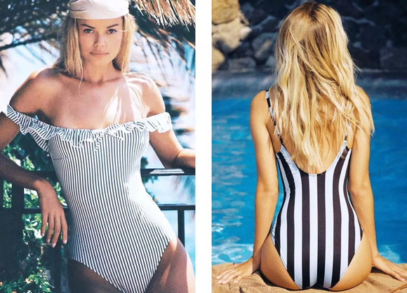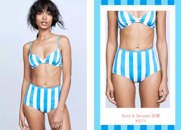 于是Isaac以最经典的条纹元素搭配平口上身、高腰剪裁,制造出超级显瘦、任何女人穿上都能修饰身材的标志性Anne Marie复古泳装,