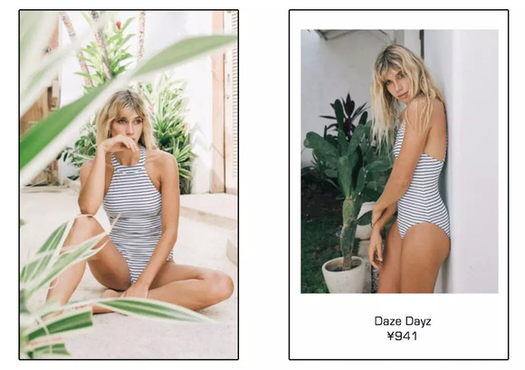 不大精选里还有一款肚兜式设计的Daze Dayz横条纹连体泳衣,设计别出心裁,肩颈线条好看的小姐姐们可以勇敢尝试!